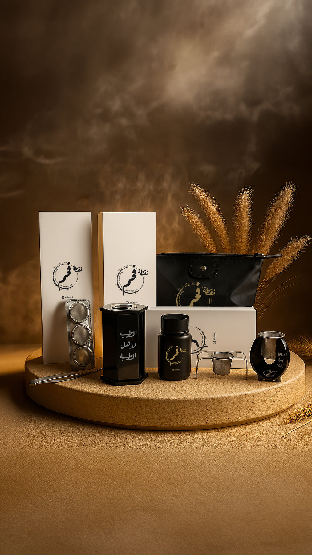 Each package includes 3 boxes (360 charcoal dots), 3 foldable aluminum mabakher, a bag, a small acrylic mabkhar, a plastic storage box, tongs, and a main mabkhar.